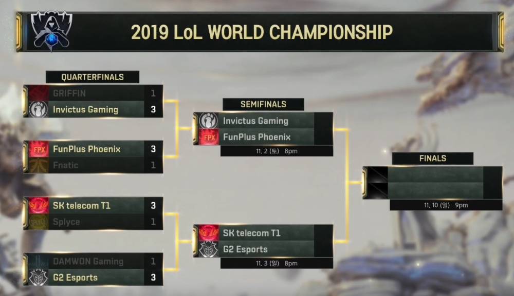담원 G2에 패배 2019 롤드컵 4강 일정 대진표는 아주경제
